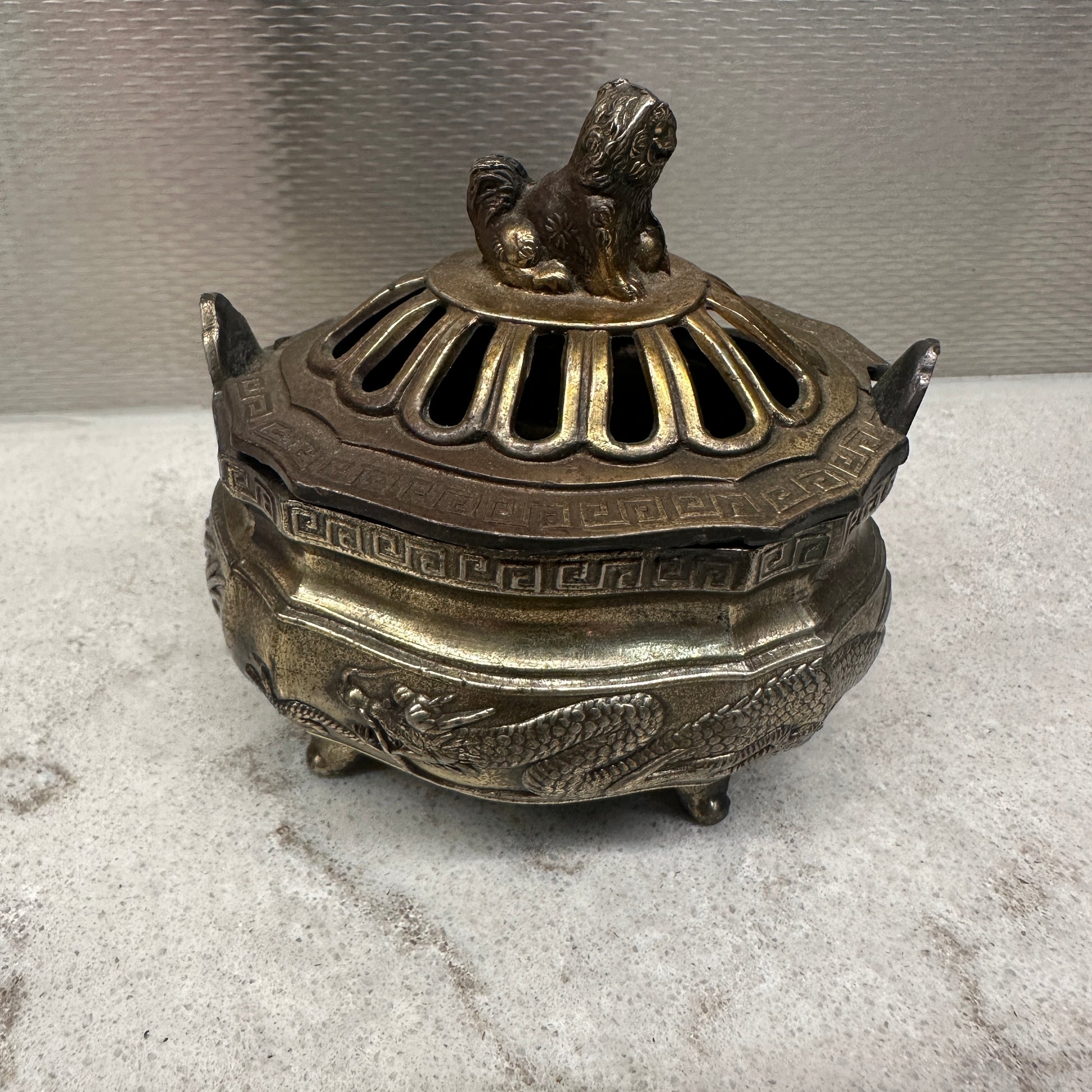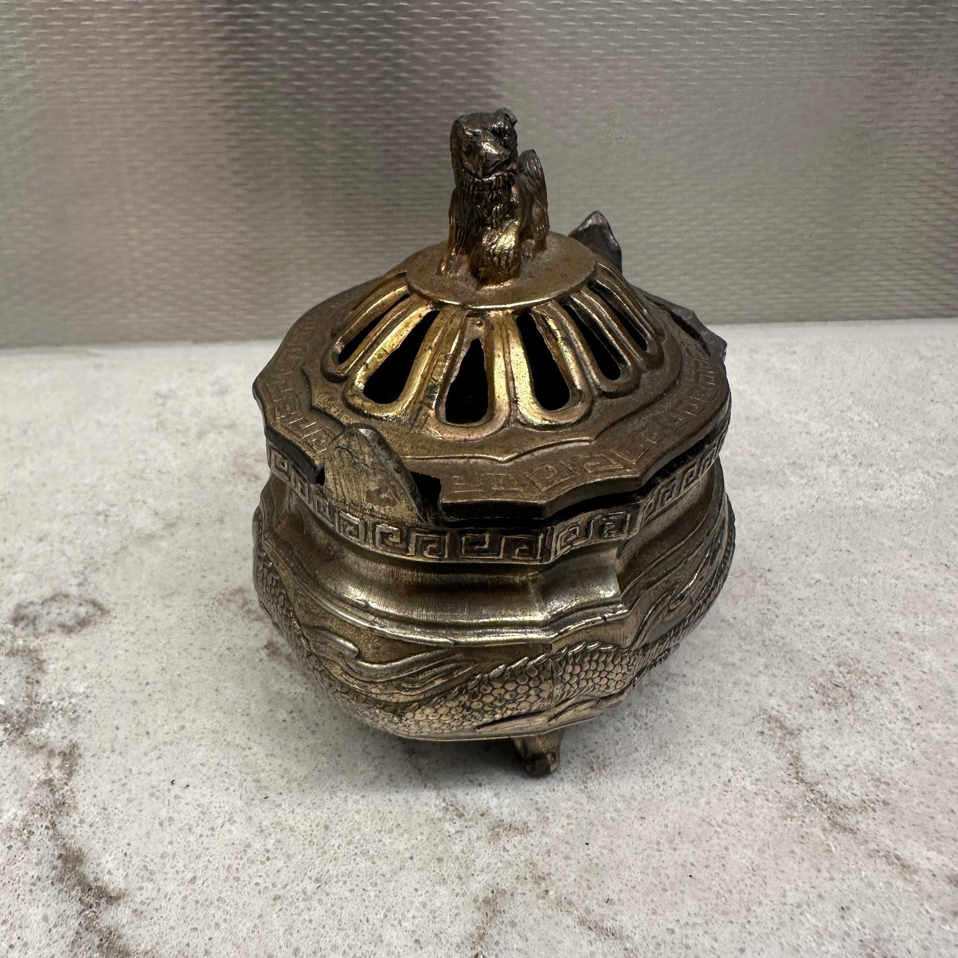 Vintage Chinese dragon and foo dog incense burner